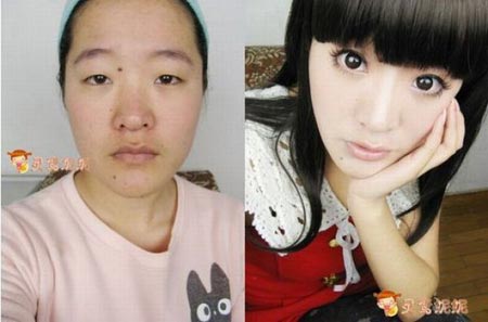3 cô gái châu Á kém nhan sắc bỗng chốc trở nên xinh đẹp, quyến rũ sau vài phút trang điểm. Mời bạn theo dõi quá trình biến đổi đến sửng sốt trên gương mặt của những cô gái này từ khi mặt mộc tới lúc lộng lẫy nhờ phấn son. Ảnh trên Cavemancircus.