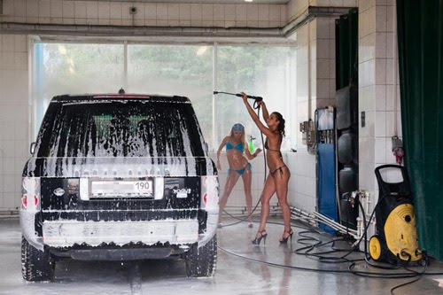 Một quán rửa xe ở Nga trở nên đắt khách khi họ thuê hai cô gái nóng bỏng mặc áo tắm làm nhân viên. Giá mỗi lần rửa là 33 USD và tăng lên 66 USD nếu khách hàng đề nghị những người đẹp này hở ngực.
