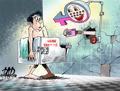 “Sởn tóc gáy!”. Đó là cảm nhận của bạn M.H. (sinh viên ĐH TĐT) khi nói về khu thay đồ nam ở hồ bơi Cung văn hóa Lao động TP.HCM. Cảm giác đó cũng có ở các bạn nam tại nhiều hồ bơi khác.